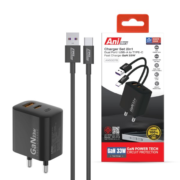 Charger Dual Port USB-A + Type C fast charger GaN33W