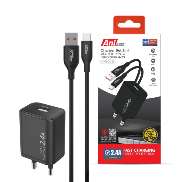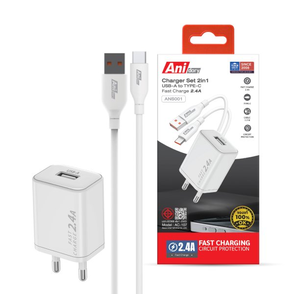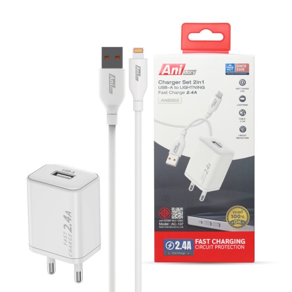 ANS003 : Charger USB-A fast charger 2.4A Cable USB-A to Lightning 2.4A (TPE)