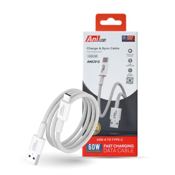 ANC012 : Fast charge 3A/60W (Nylon) - White