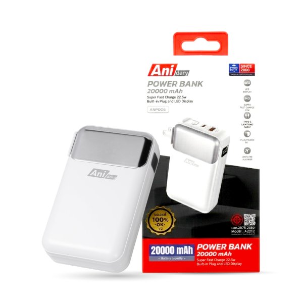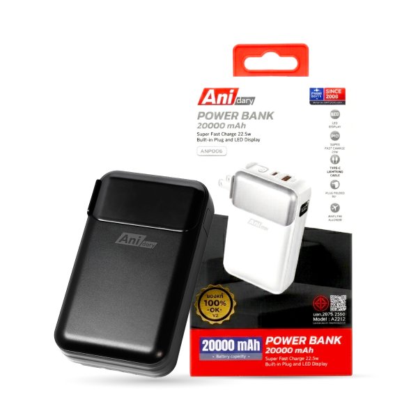 Power bank 20000 mAh Super Fast Charge 22.5w Built-in Plug and LED Display