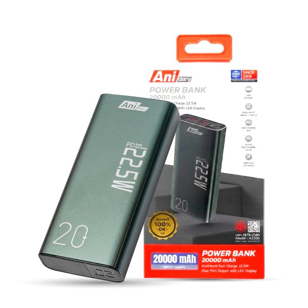 ANP009G : Power bank 20,000 mAh Aluminium Fast Charge 22.5w